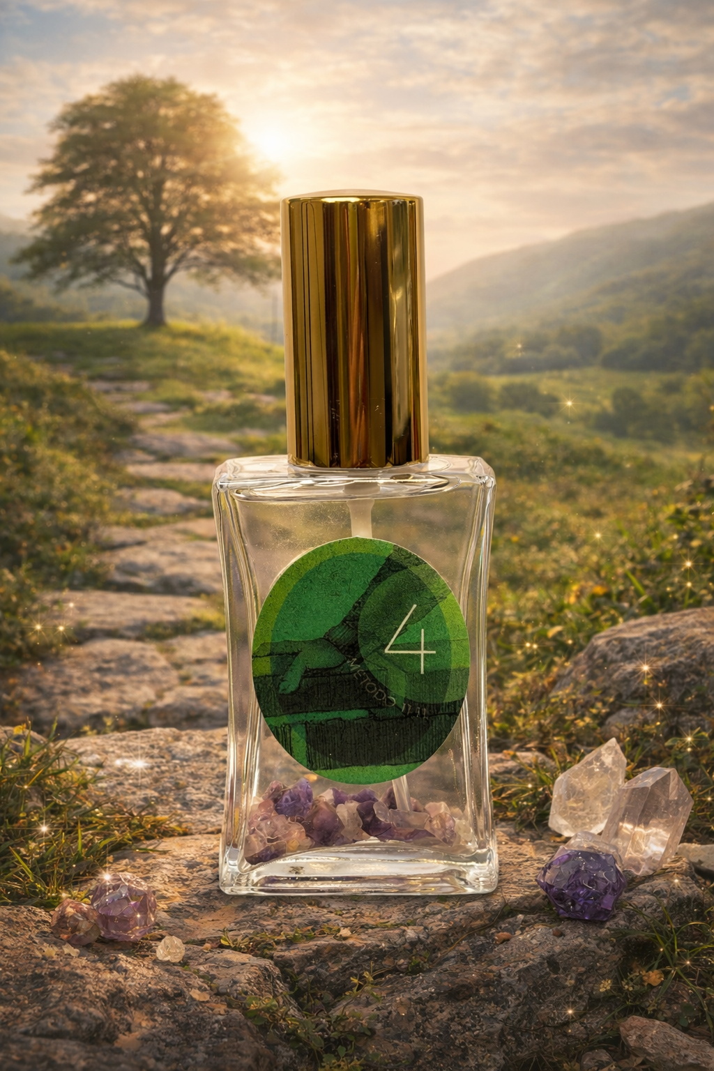 All’interno dell’essenza vibrano le frequenze del Quarzo Rosa e dell’Ametista,